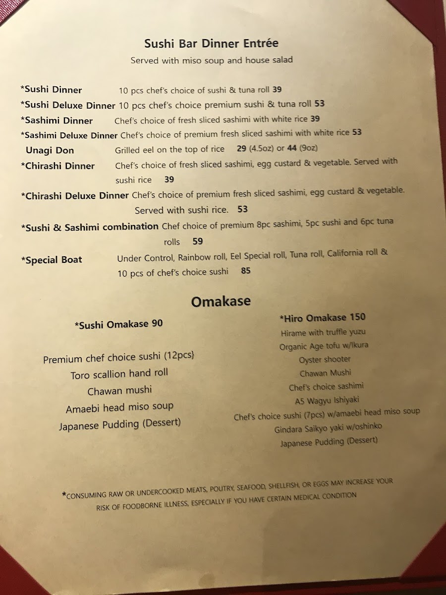 Sushi Hiro Menu